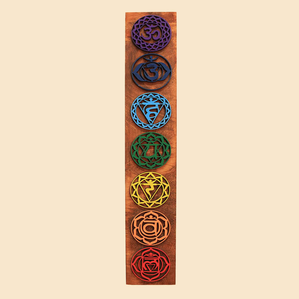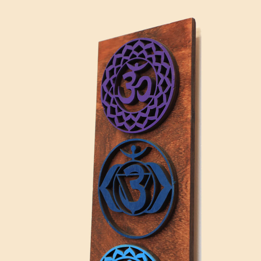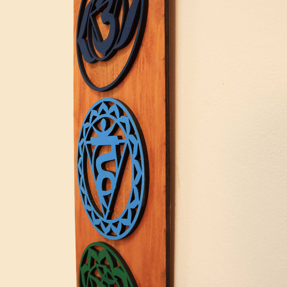 A természetes fa meleg árnyalatai és a gondosan kidolgozott, színes csakramotívumok különleges atmoszférát teremtenek meditációs térben, jógaszobában, nappaliban vagy akár kezelőhelyiségekben is.