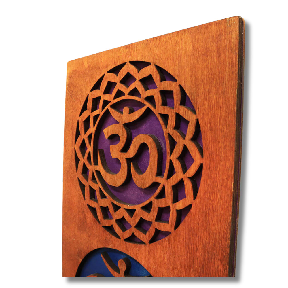 A természetes fa meleg árnyalatai és a gondosan kidolgozott, színes csakramotívumok különleges atmoszférát teremtenek meditációs térben, jógaszobában, nappaliban vagy akár kezelőhelyiségekben is.