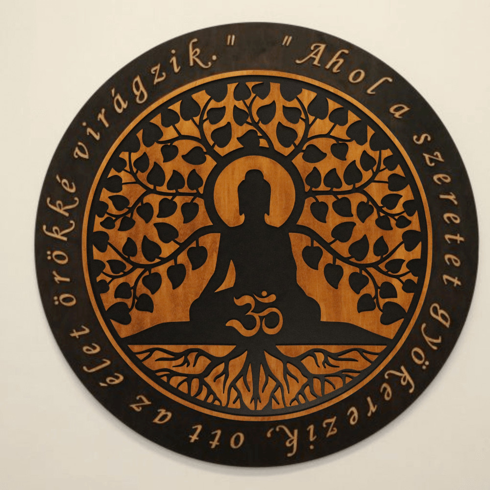 Prémium minőségű, két rétegű, hátlapos falidísz rétegelt fából, összesen 10 mm vastagsággal. A felső díszítő réteg precíz lézervágással készül, míg az alsó hátlap stabil tartást és elegáns kontrasztot biztosít. A falidísz kézzel pácolt és olajozott, így természetes faerezet, meleg tónus és tartós védelem jellemzi.