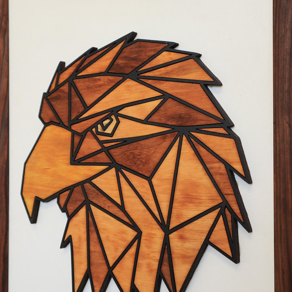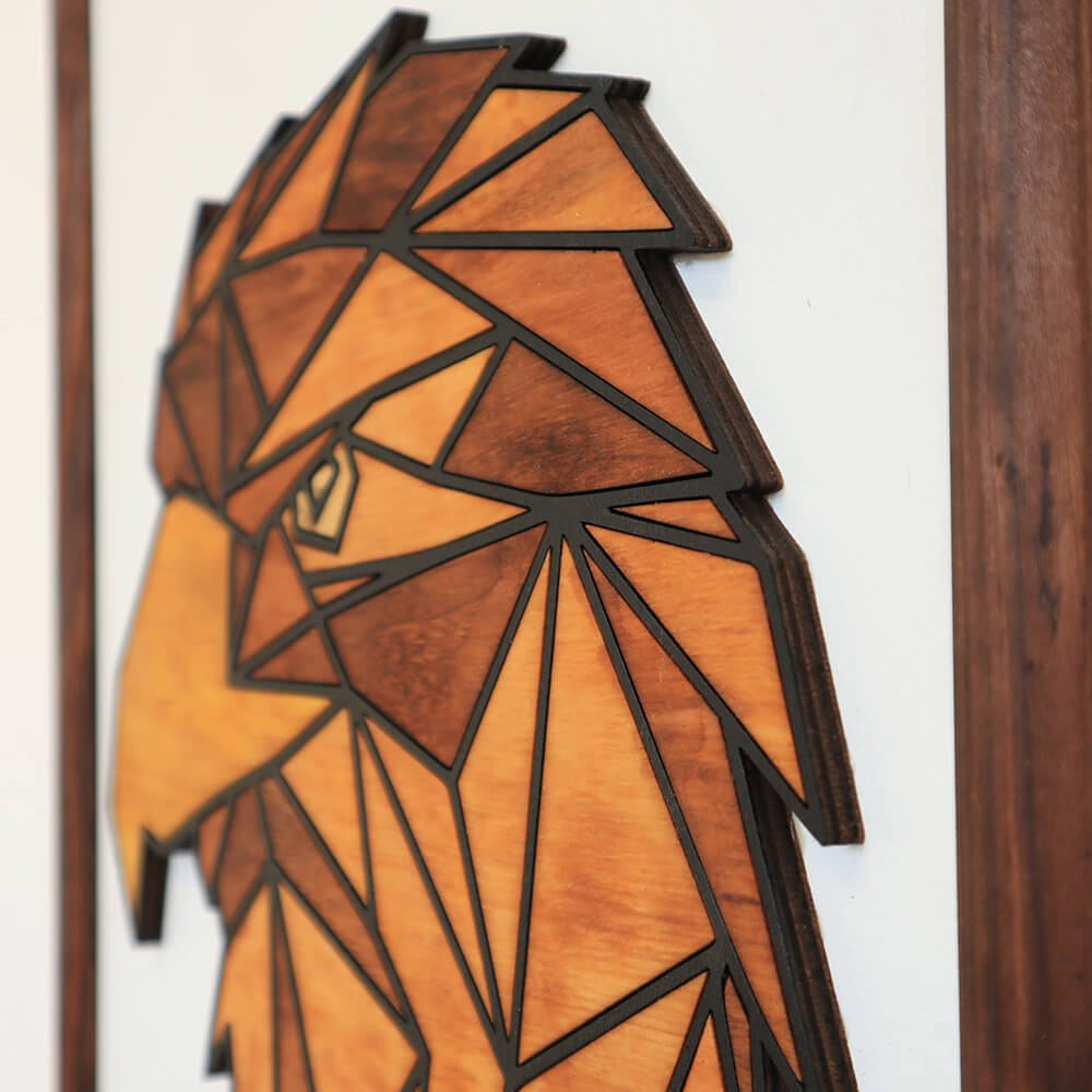 Prémium minőségű, többrétegű polygon fa falikép, amely modern geometrikus vonalvezetést és természetes fa textúrát kombinál. A lézervágott elemek pontosan illeszkednek, így a dekoráció erőteljes 3D hatást kelt. Ideális választás nappaliba, hálóba, irodába vagy ajándéknak.